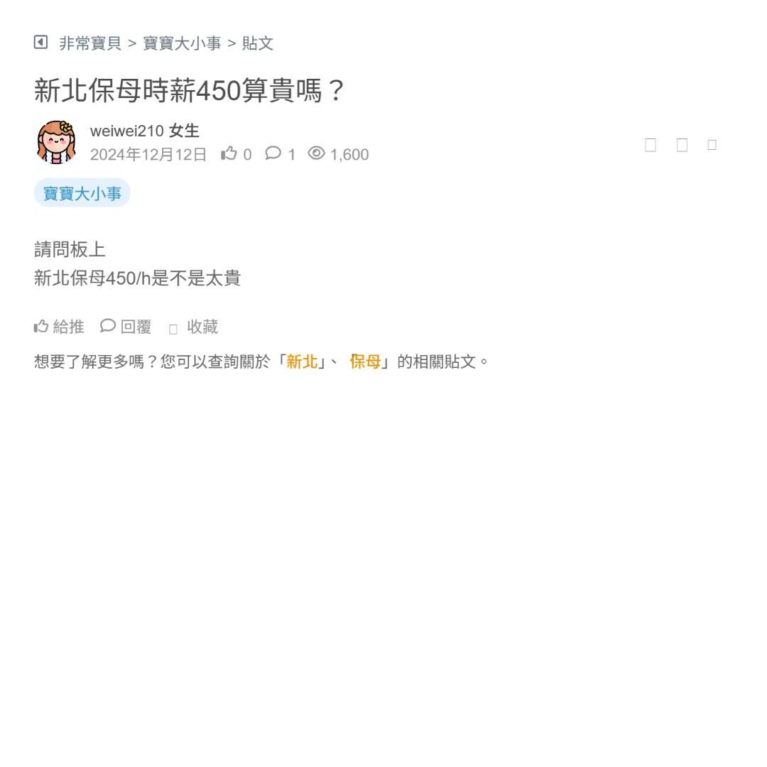 新北保母450/h是不是太貴