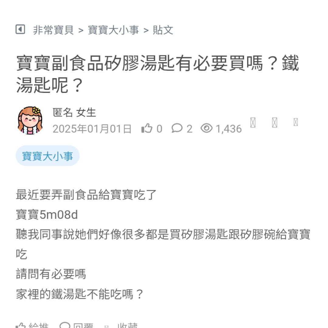 聽我同事說她們好像很多都是買矽膠湯匙跟矽膠碗給寶寶吃