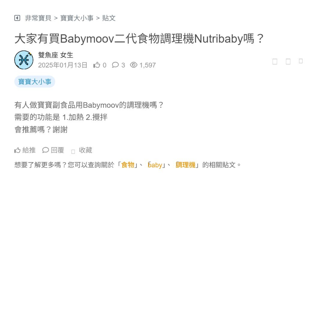 大家有買Babymoov二代食物調理機Nutribaby嗎?