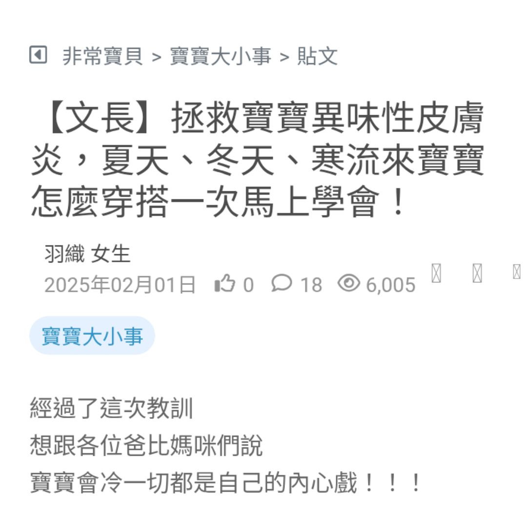 【文長】拯救寶寶異味性皮膚炎,夏天、冬天、寒流來寶寶怎麼穿搭一次馬上學會!