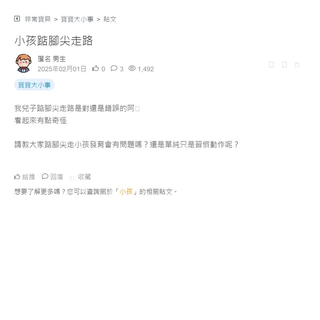 請教大家踮腳尖走小孩發育會有問題嗎?還是單純只是習慣動作呢?