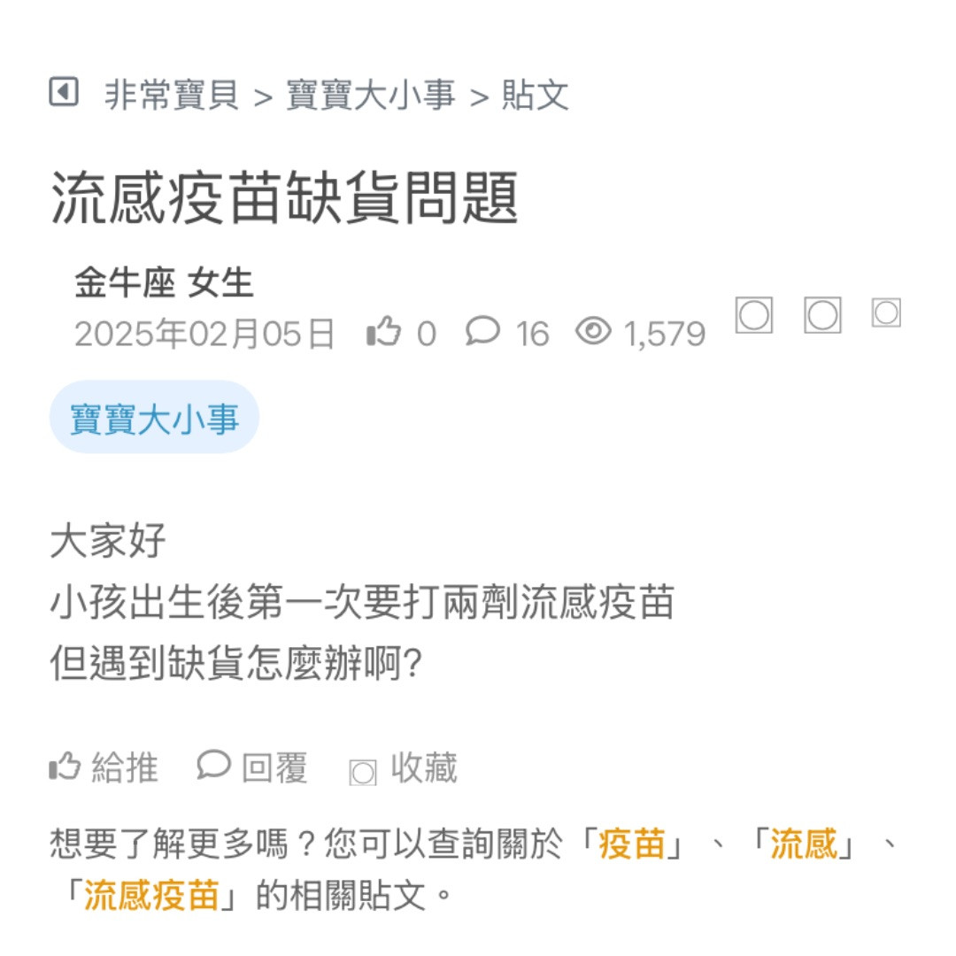 最近新冠疫情又爆發 好擔心寶寶健康 請問各位爸爸媽媽有讓寶寶打新冠疫苗嗎 聽說快篩都買不到 🥹 看更多