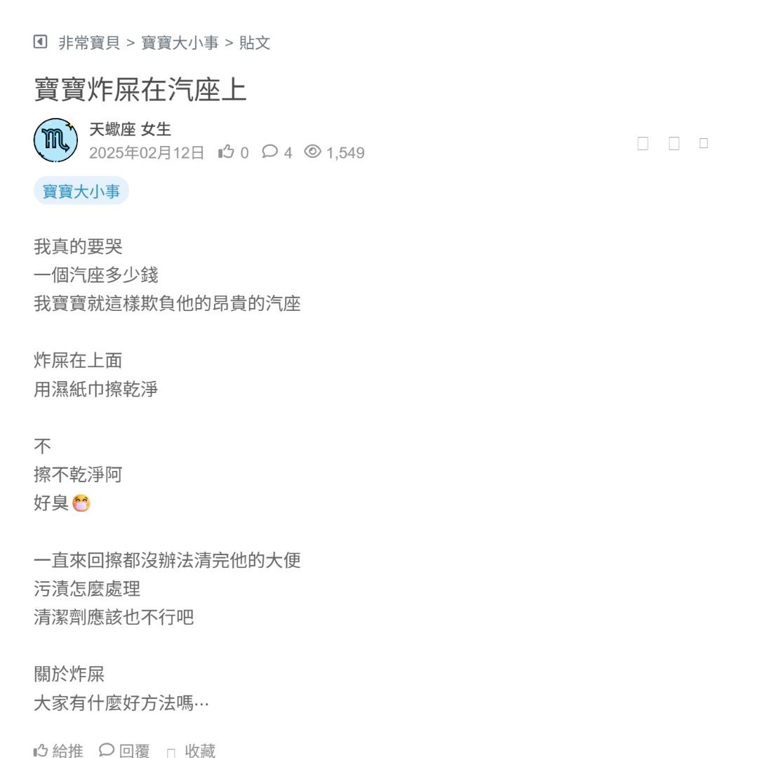 我家寶寶只在寶寶座椅跟寶寶推車上炸屎過