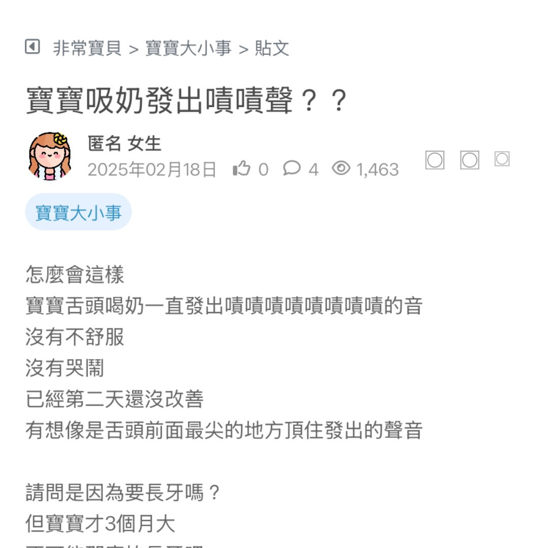 我家寶寶前幾個月也有這種聲音,後來吸吮能力變強就自然改善了!只要寶寶喝得飽、沒有嗆奶或脹氣太嚴重,就不用太擔心喔~