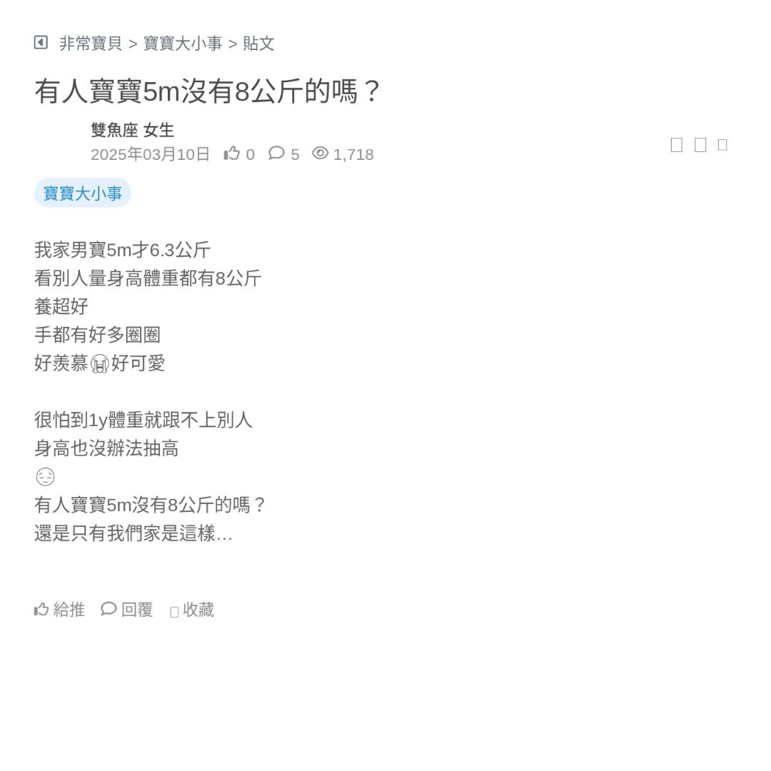 很怕到1y體重就跟不上別人