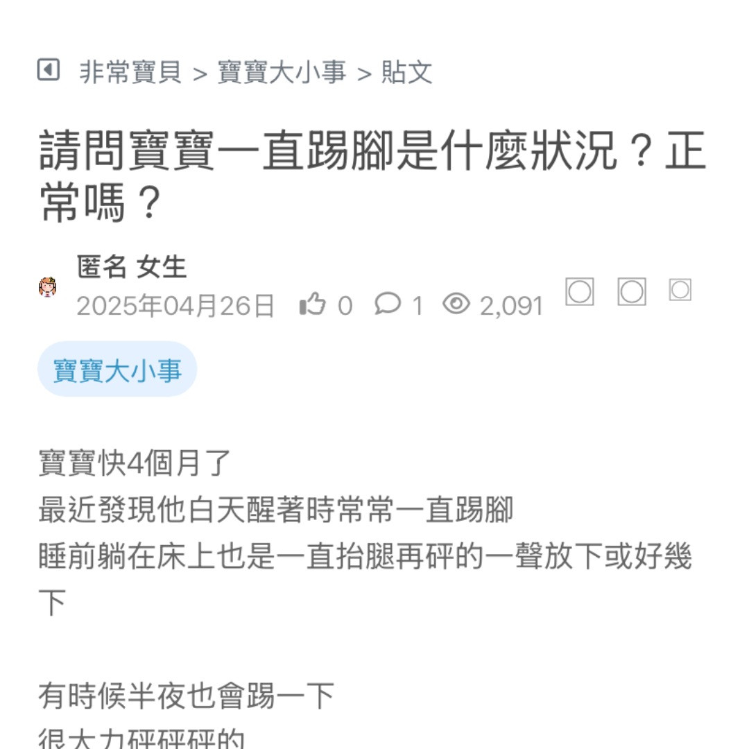 請問寶寶一直踢腳是什麼狀況?正常嗎?