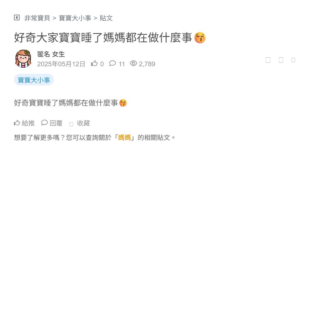 好奇大家寶寶睡了媽媽都在做什麼事😚