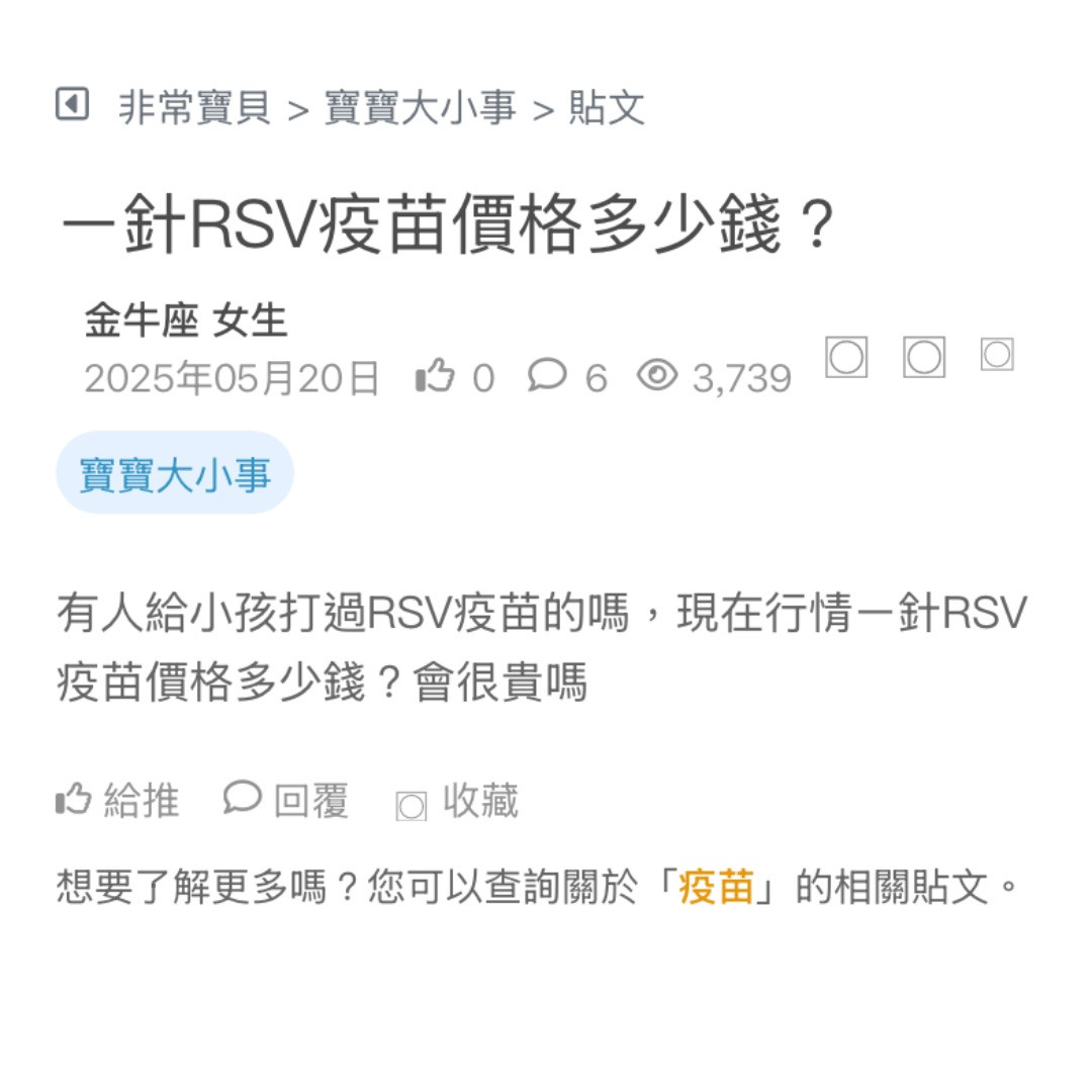 RSV疫苗到底要不要讓小孩打 畢竟一針$16000元 很猶豫 😕 大家覺得呢?該打不該打? 看更多
