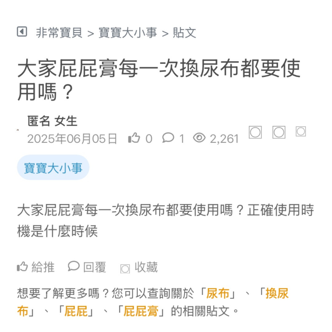 請問屁屁膏要每天擦一次 還是每次換尿布擦一次? 看更多