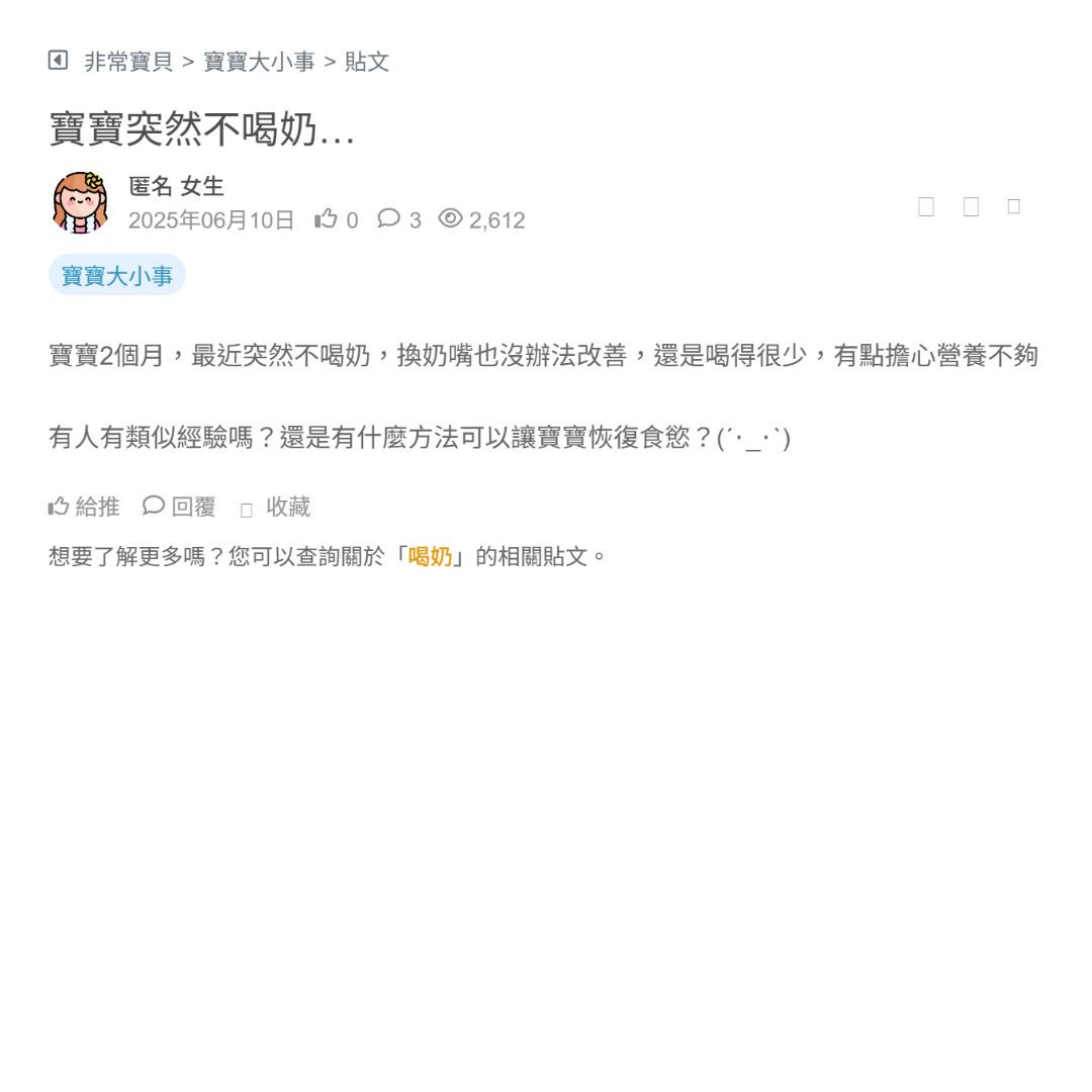 寶寶三個多月大 之前親餵都很順 幾乎一靠近就會自己找乳頭吸 結果這兩天突然怎樣都不吸了 😱 我一靠近他就生氣扭頭哇哇大哭 好像我餵他是害他一樣 🥲 只好擠出...