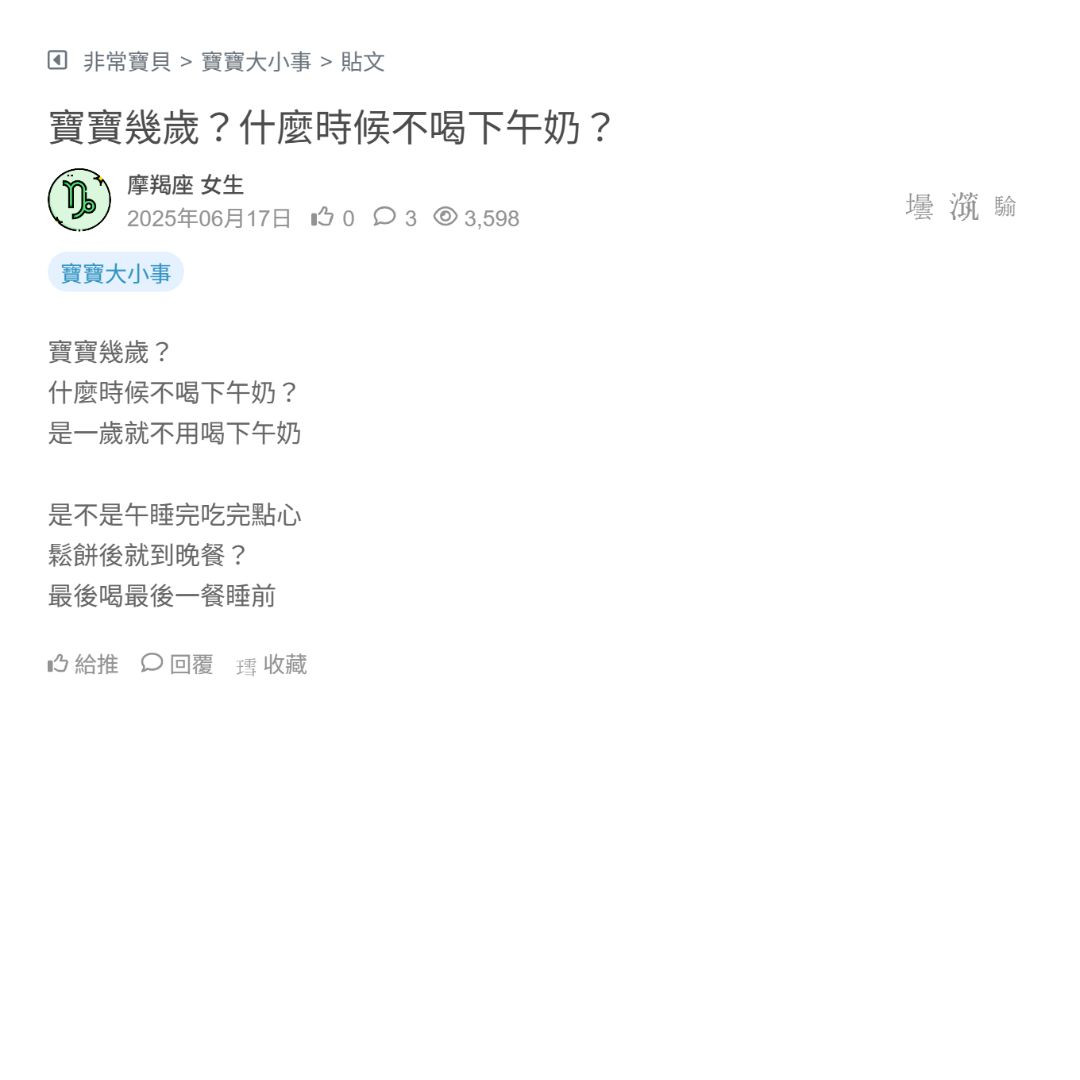 寶寶幾歲?什麼時候不喝下午奶?