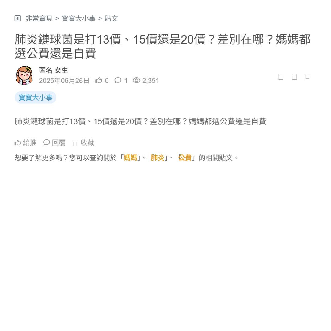 肺炎鏈球菌是打13價、15價還是20價?差別在哪?媽媽都選公費還是自費