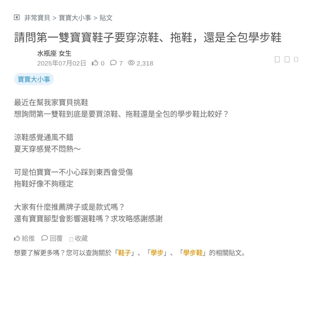 想詢問第一雙鞋到底是要買涼鞋、拖鞋還是全包的學步鞋比較好?