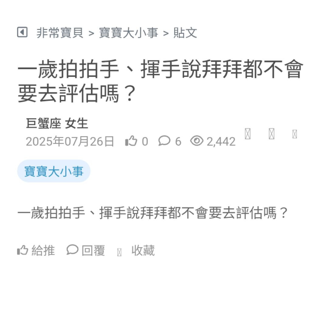 一歲拍拍手、揮手說拜拜都不會要去評估嗎?