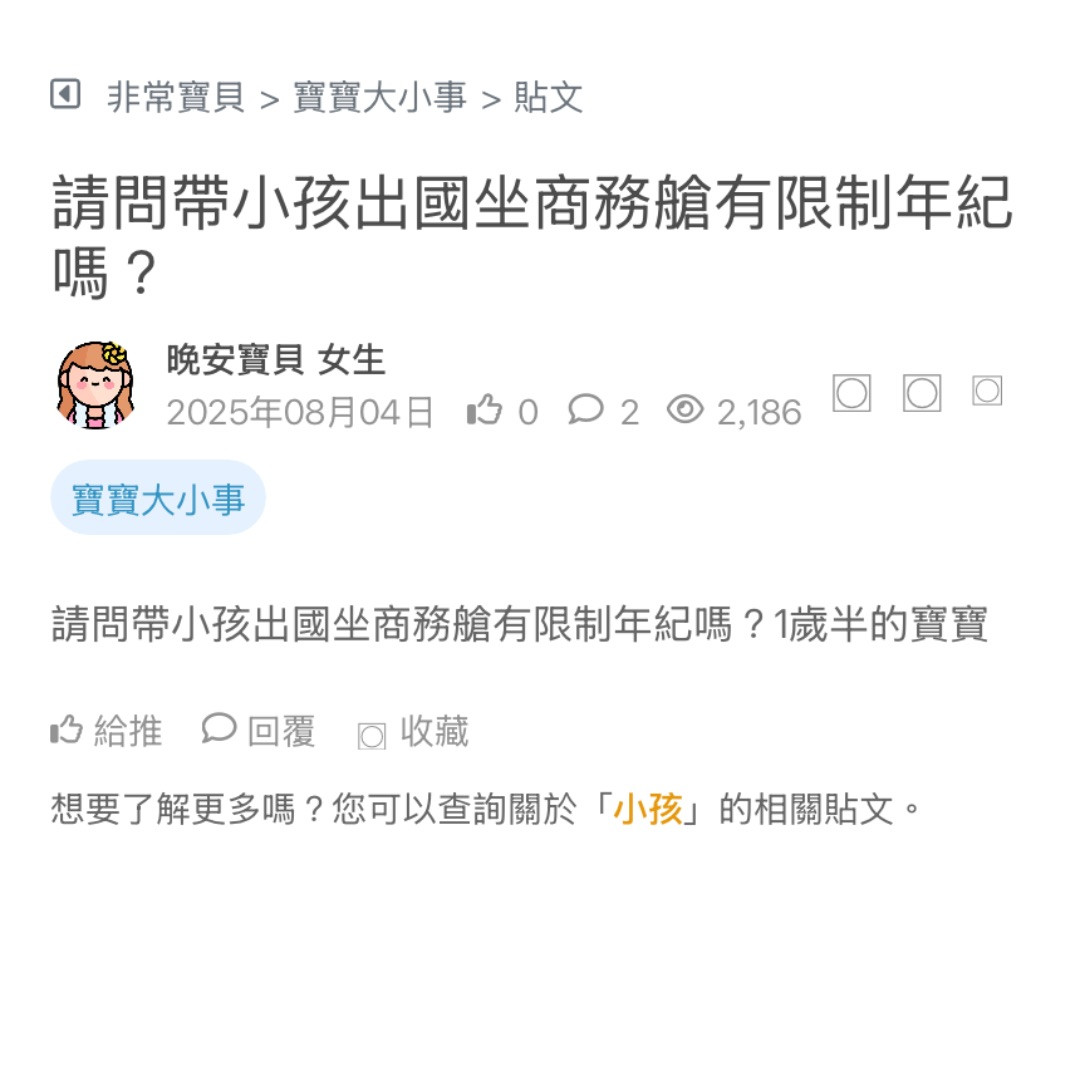 請問帶小孩出國坐商務艙有限制年紀嗎?1歲半的寶寶