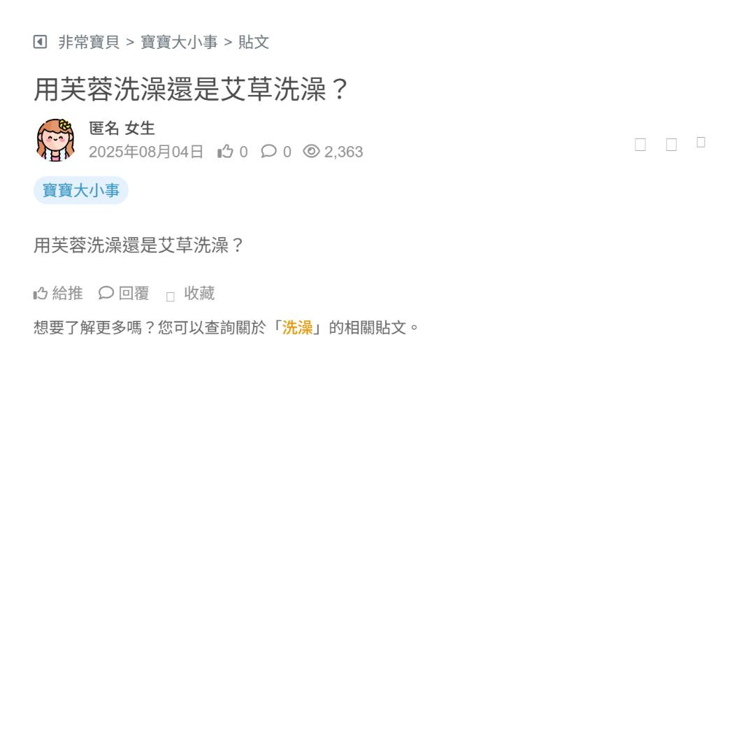上個禮拜剛生產完~ 如果還有一點點惡露 可以泡澡嗎? 看更多