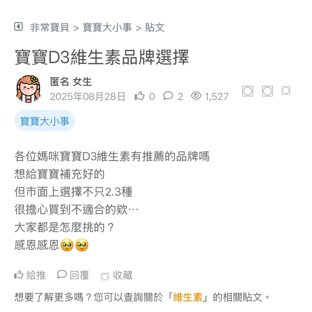 各位媽咪寶寶D3維生素有推薦的品牌嗎