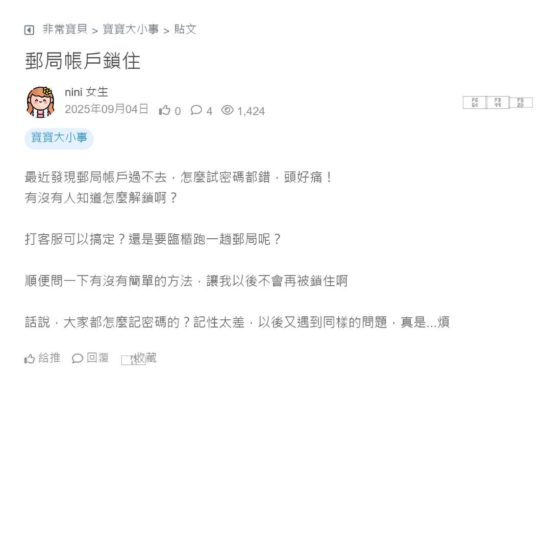 最近發現郵局帳戶過不去,怎麼試密碼都錯,頭好痛!