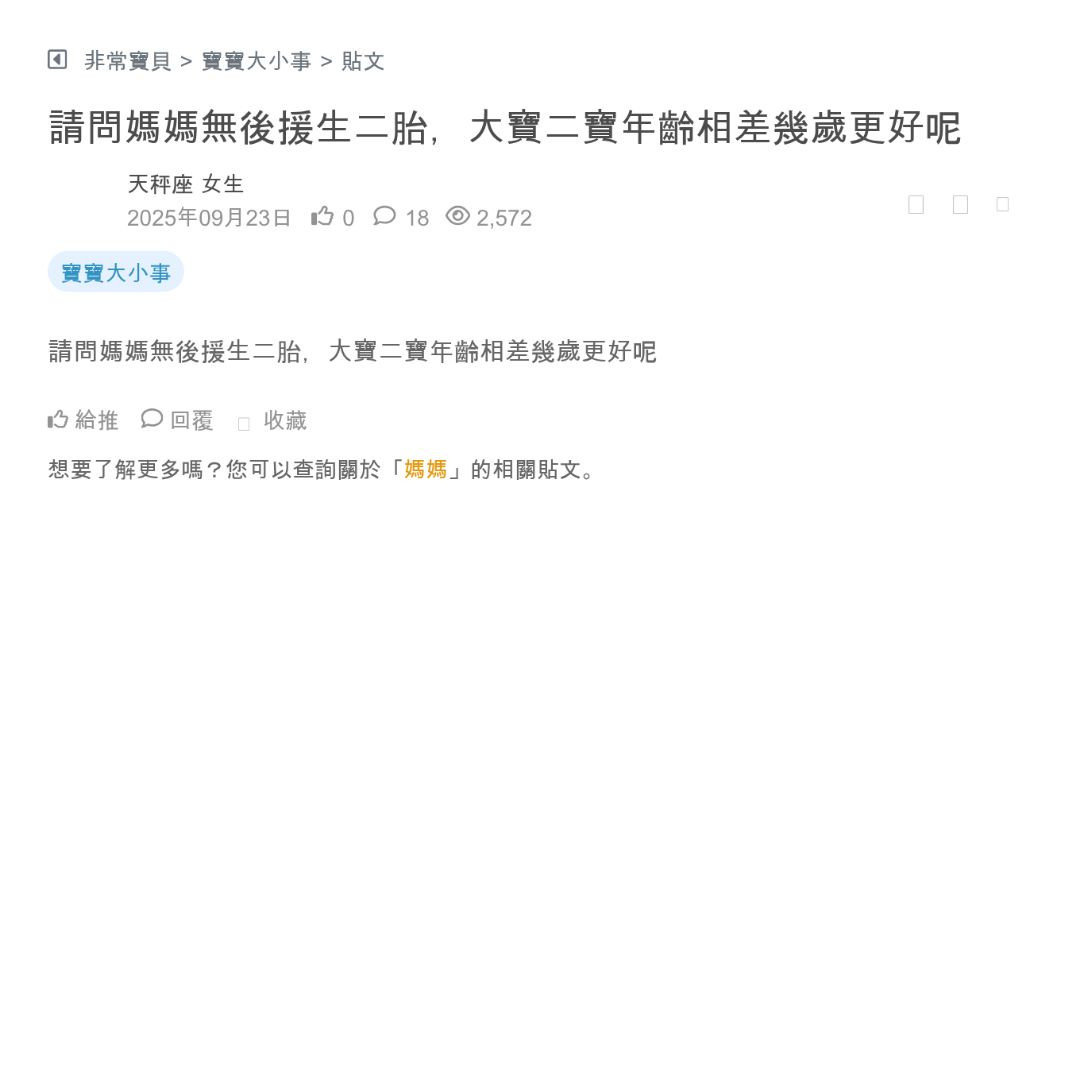 安安已經6m了 總算不會帶的這麼累了 自己和妹妹差2y 我也想要讓安安有個差2y的弟弟妹妹 可是2y的小孩正值叛逆期 第二胎差2y會比較不好帶嗎? 還是差3y會比較好 看更多