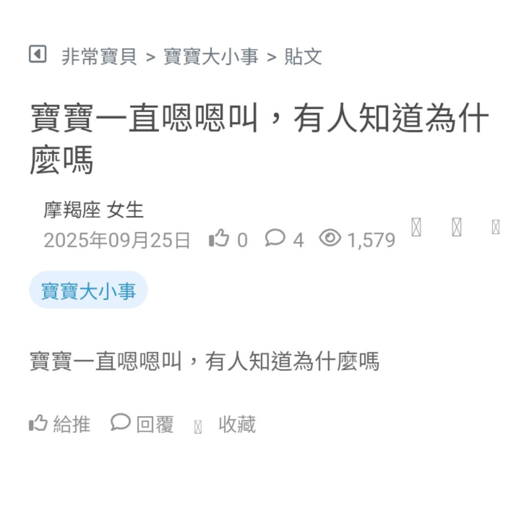 新手媽媽第一次發文~ 加入非常寶貝已經一陣子了 原本以為只有我家寶寶愛哭 後來看到大家的寶寶也很愛哭 原來不是只有我的寶寶這樣 不知道寶寶會哭到幾歲 目前寶寶快要一歲了~❤️ 看更多