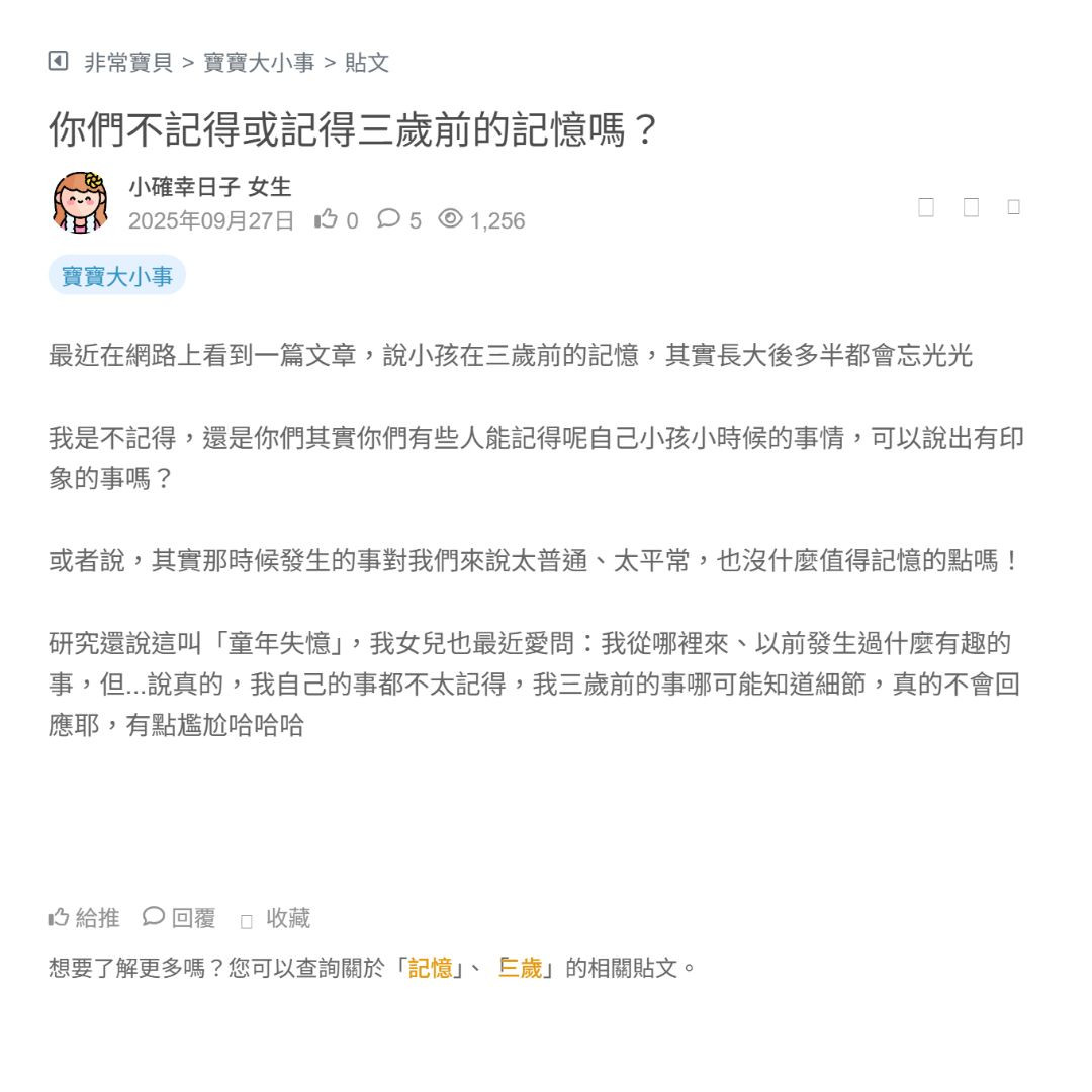 好奇大家三歲以前都沒有記憶嗎? 看更多