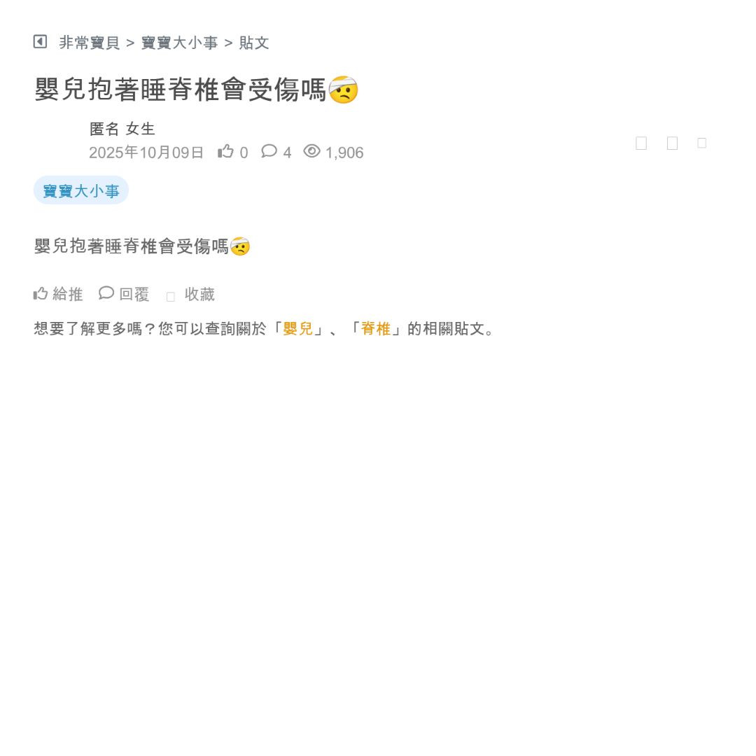 嬰兒抱著睡脊椎會受傷嗎🤕