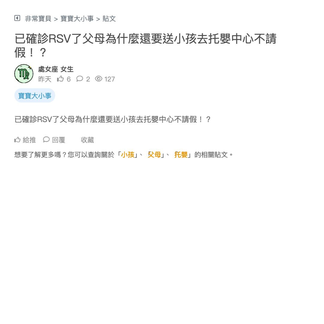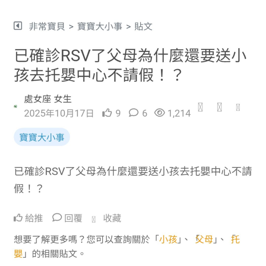已確診RSV了父母為什麼還要送小孩去托嬰中心不請假!?