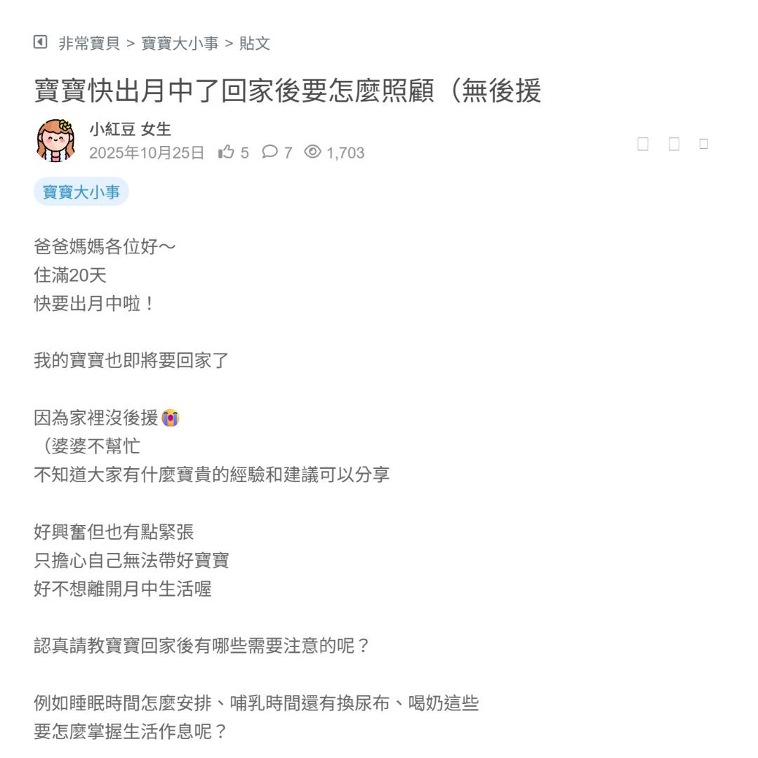寶寶快出月中了回家後要怎麼照顧(無後援
