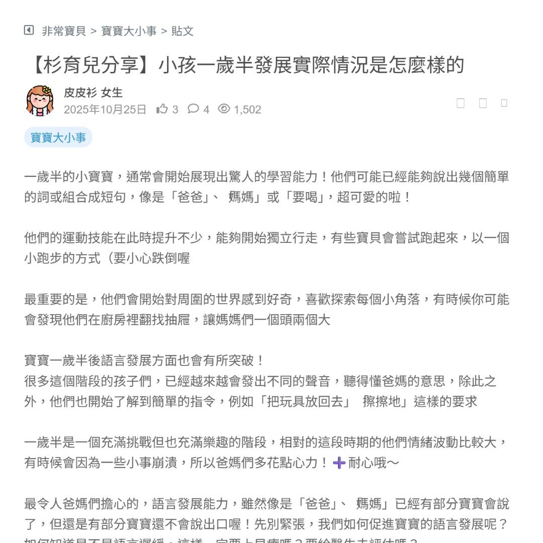 【杉育兒分享】小孩一歲半發展實際情況是怎麼樣的