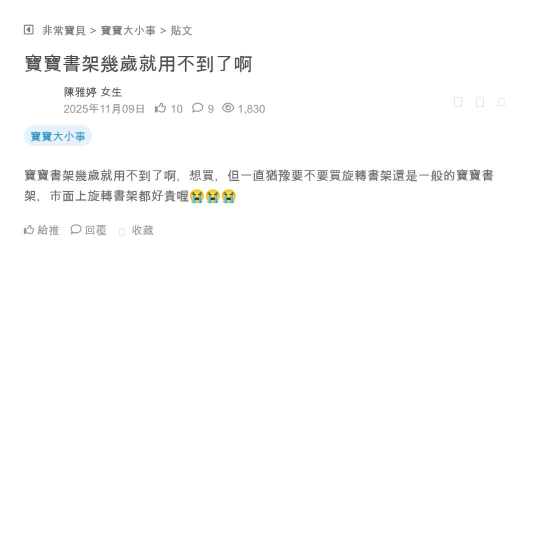 寶寶書架幾歲就用不到了啊,想買,但一直猶豫要不要買旋轉書架還是一般的寶寶書架,市面上旋轉書架都好貴喔😭😭😭