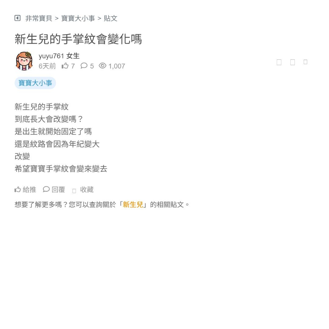 新生兒的手掌紋會變化嗎