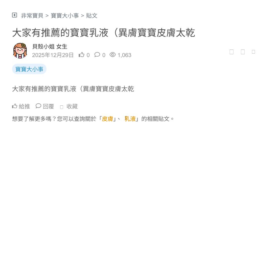 有沒有異味性皮膚炎寶寶推薦的乳液🥹 看更多