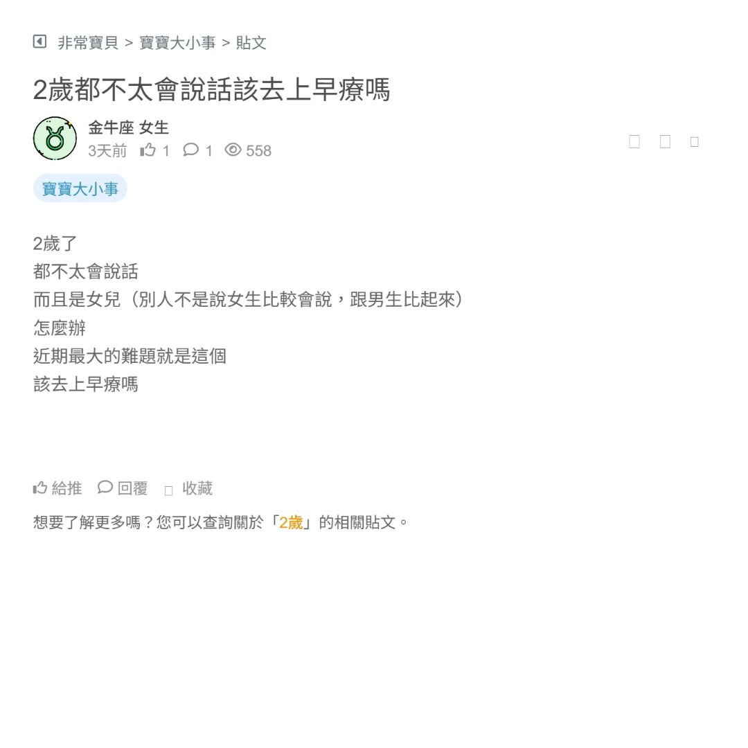 大家好 我是焦慮的媽咪 寶寶現在1歲8個月 會指東西但幾乎 不會有明確詞彙 最近健兒門診被醫生提醒需要盡早評估 早療這句話像晴天霹靂打中心臟 醫生說寶...