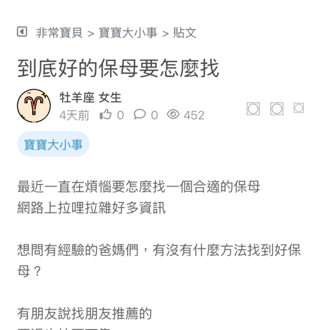 最近一直在煩惱要怎麼找一個合適的保母