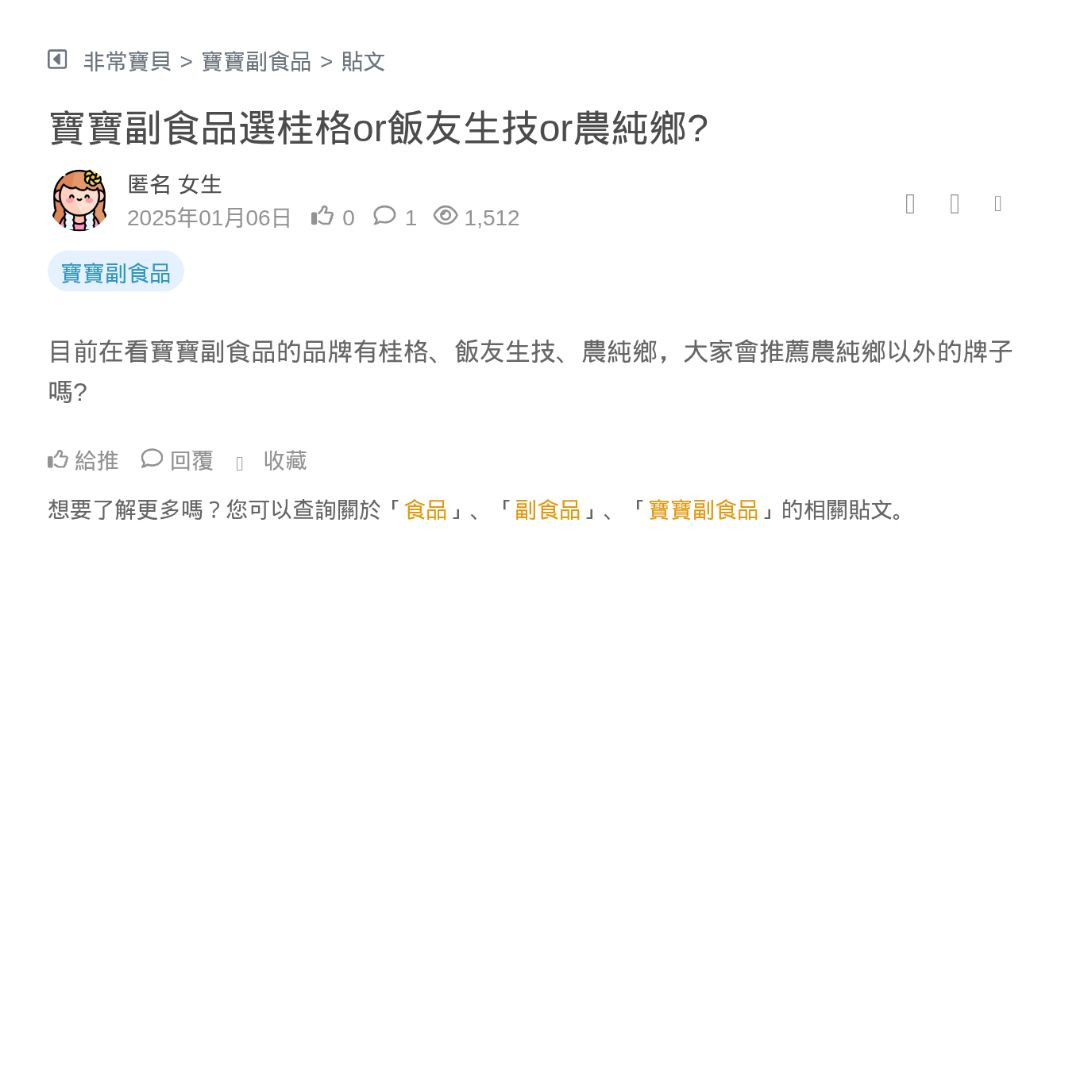 目前在看寶寶副食品的品牌有桂格、飯友生技、農純鄉,大家會推薦農純鄉以外的牌子嗎?