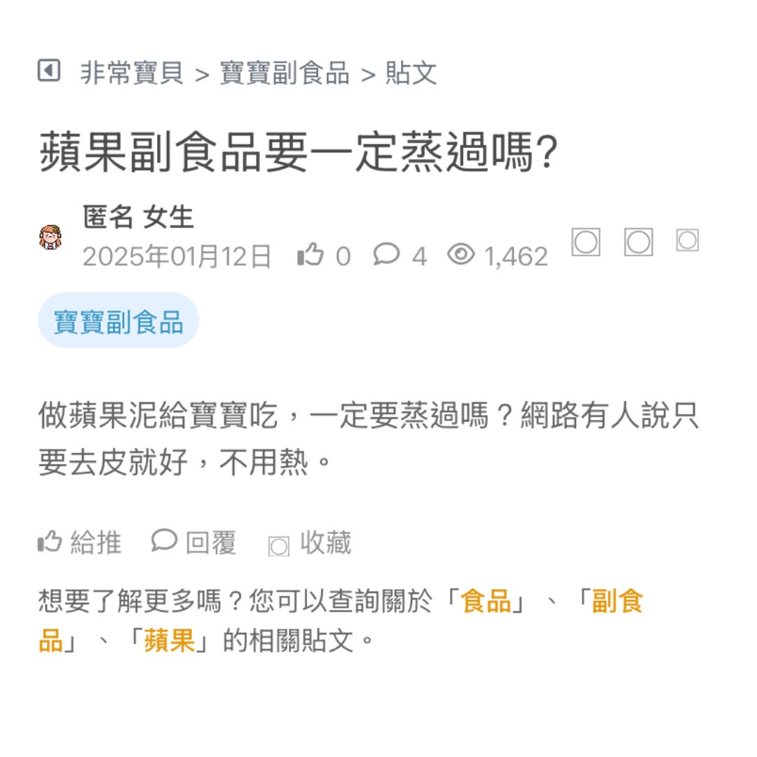 大家好 最近我在考慮自製寶寶副食品 如果是做水果泥 (例如蘋果) 大家會先用蒸氣加熱嗎? 看更多
