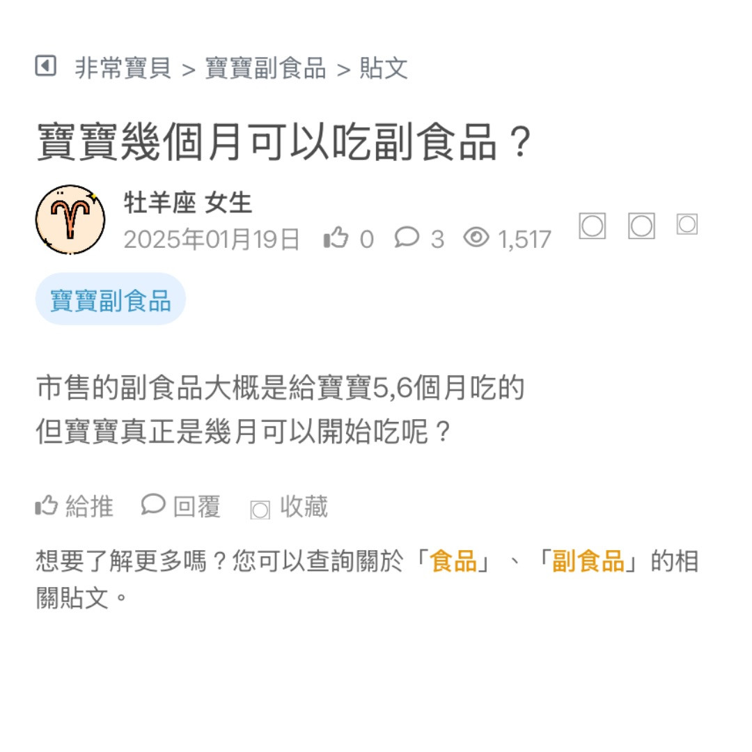非常寶貝的媽媽爸爸們 想問大家都是幾個月給寶寶開始吃副食呢? 我家有3個月10天的女嬰 看更多