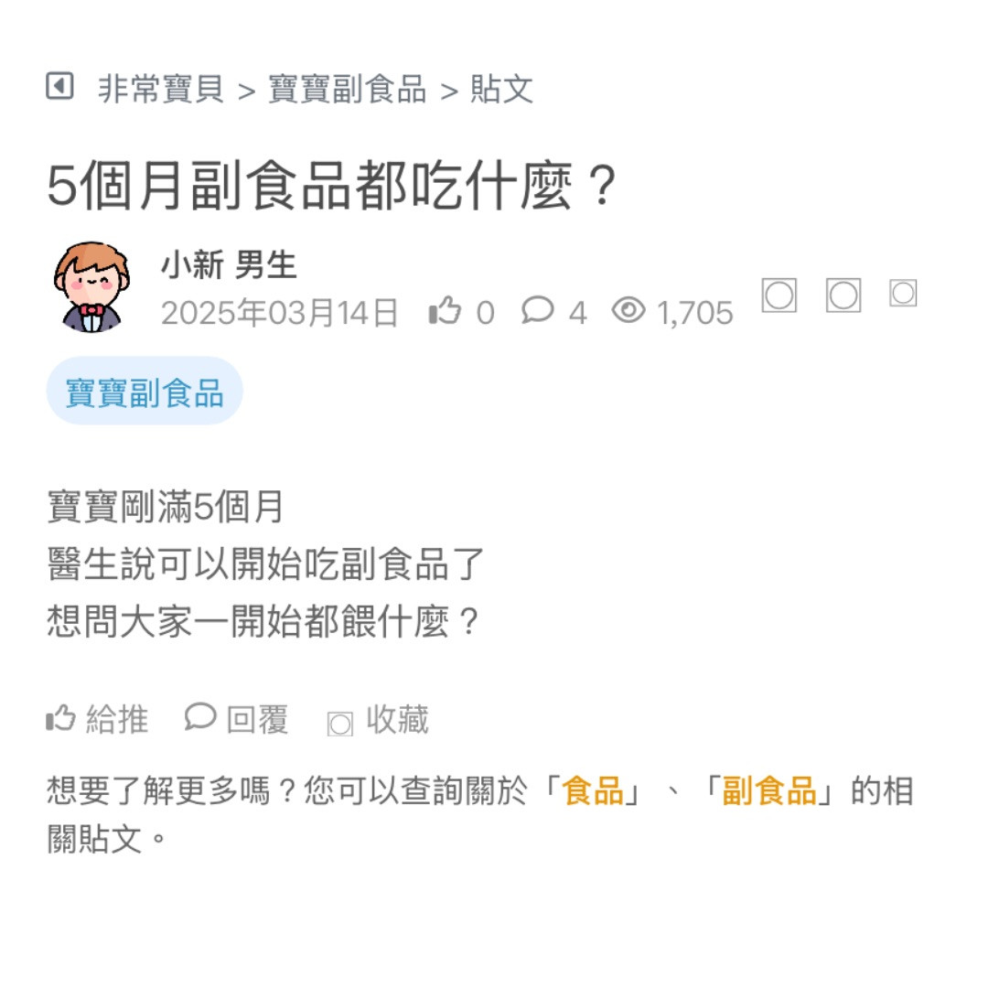 非常寶貝的媽媽爸爸們 想問大家都是幾個月給寶寶開始吃副食呢? 我家有3個月10天的女嬰 看更多
