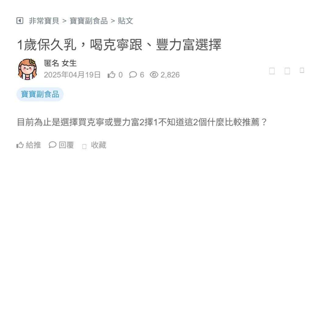 1歲保久乳,喝克寧跟、豐力富選擇