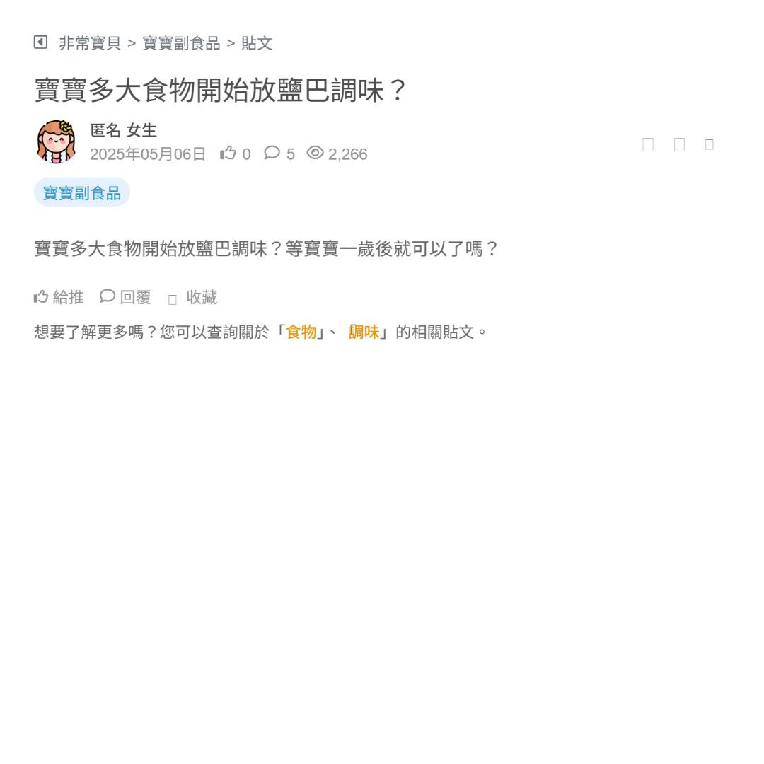 寶寶現在10個月,一直都吃原味,婆婆常說「這樣很沒味道」,上次有一次在我面前就偷加給寶寶鹽巴調味。。。。。