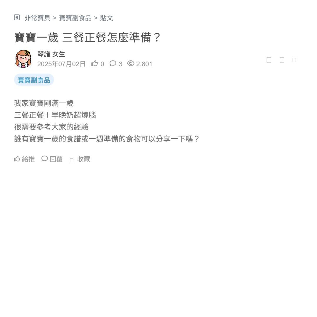 欸大家,小寶寶已經滿一歲了,我家寶寶一天只吃兩次正餐(不含奶),這樣會不會太少啊? 我發現每次都要很費心思準備餐點,但有時候他吃得不多,會擔心他是不...