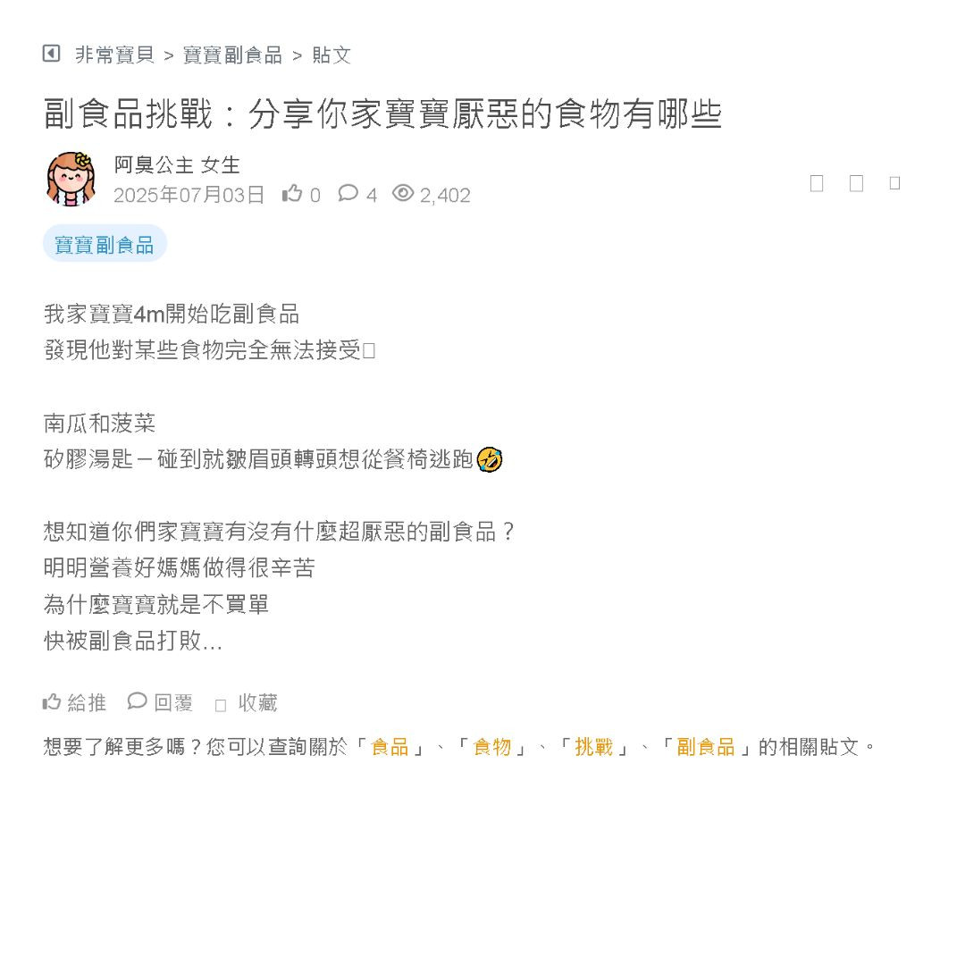 副食品吃太少是正常的嗎? 寶寶拒絕😢現在一天就吃兩三口 然後就轉頭大哭 是我煮的太難吃嗎⋯⋯ 看更多