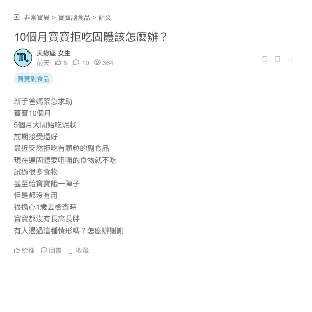 有人的寶寶也是這樣嗎 寶寶11個月都還沒開始吃副食品 完全不吃副食品 😭 只喝奶 寶寶粥、水果泥、蔬菜泥等什麼方法都用過了 試到現在寶寶都快滿周歲還...