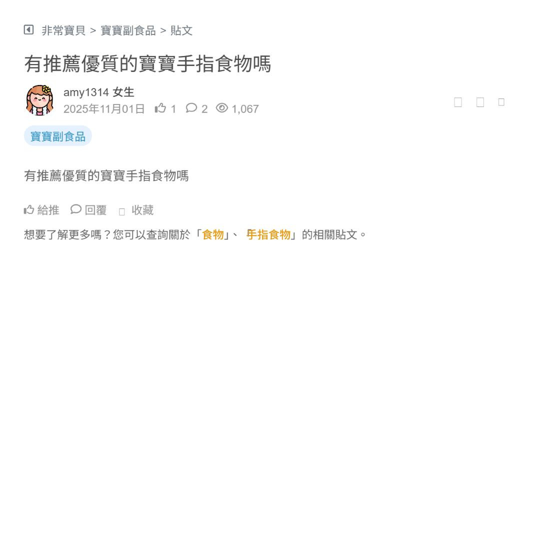 平常的副食品食物有什麼常吃或你們家寶寶愛吃手指食物嗎?最近都煮到想擺爛啦 看更多