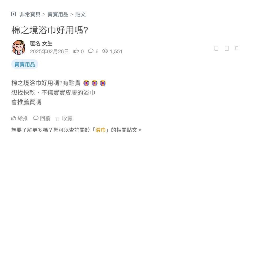 棉之境浴巾好用嗎?有點貴 😭😭😭