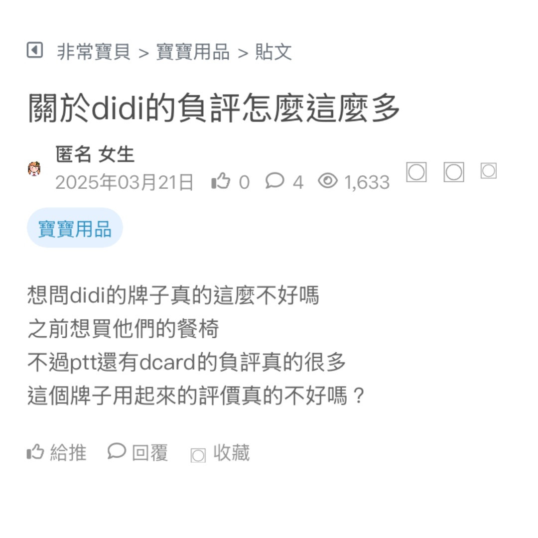 最近在選購寶寶餐椅時碰到一些坑,不得不跟大家分享一下 某知名品牌的寶寶餐椅,設計看似巧思,其實使用起來卻有很多問題 椅座設計對於寶寶安全並不友善,容...