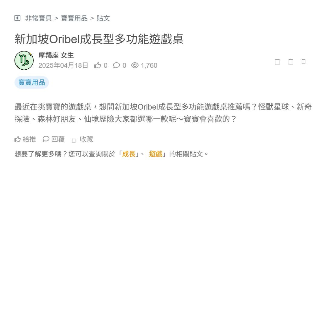 最近在挑寶寶的遊戲桌,想問新加坡Oribel成長型多功能遊戲桌推薦嗎?怪獸星球、新奇探險、森林好朋友、仙境歷險大家都選哪一款呢~寶寶會喜歡的?