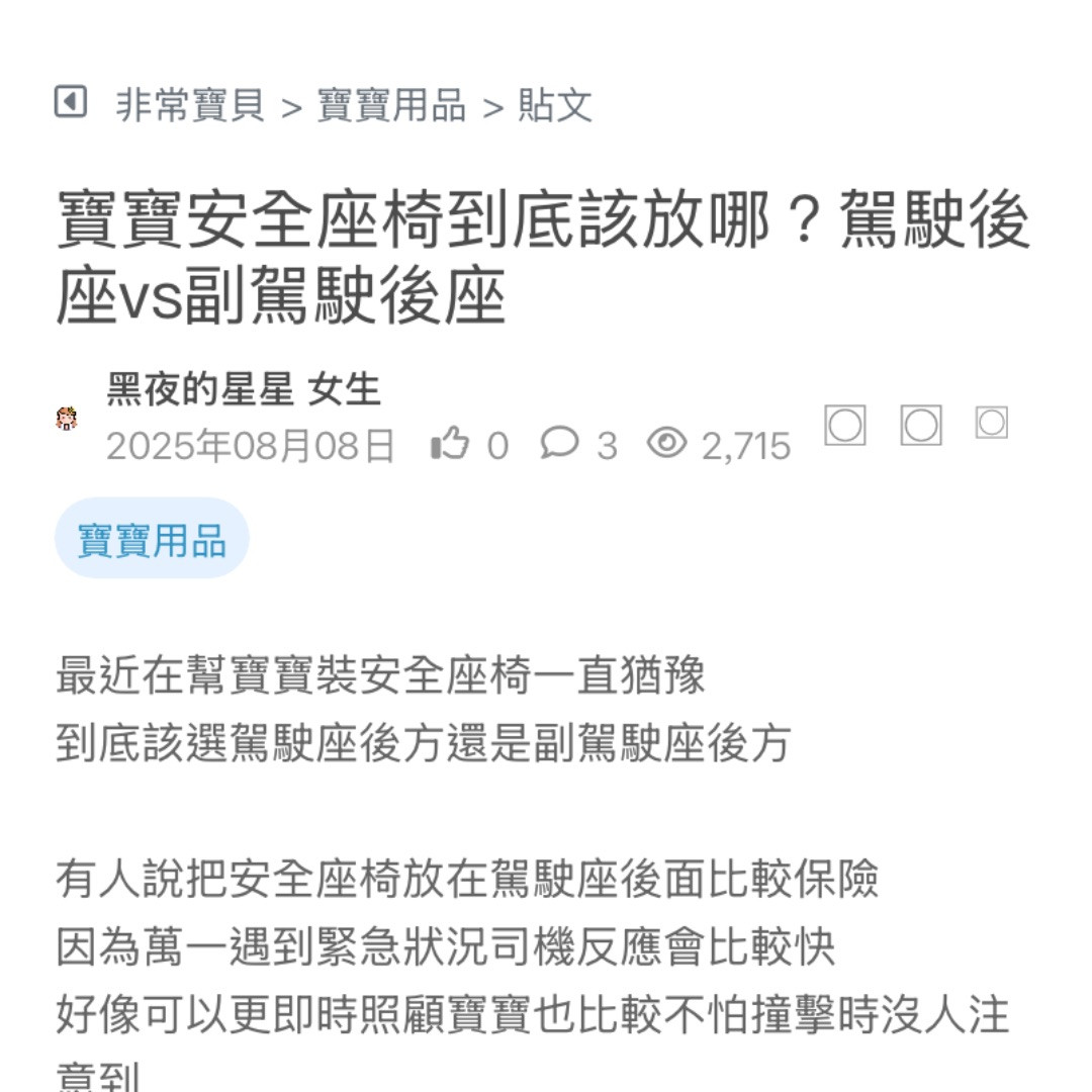 寶寶安全座椅到底該放哪?駕駛後座vs副駕駛後座