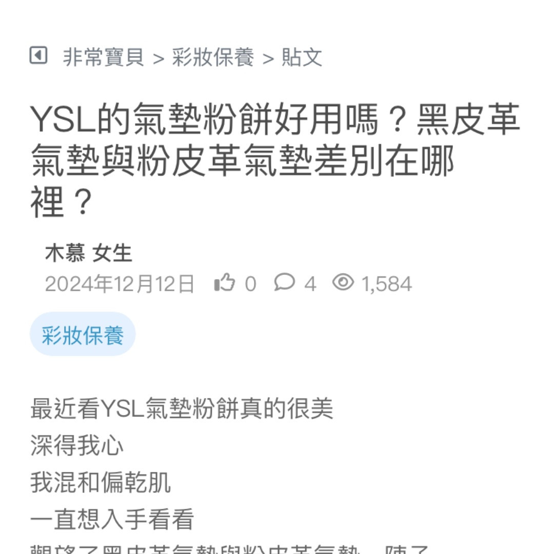最近一直被雪花秀氣墊轟炸 之前也有好多網紅開團,很多人都說「超好用」「這顆是懶人救星」 給團購價+贈品 害我好想買... 請問有沒有YSL氣墊好用 有人用過雪花秀氣墊的真實心得 到底該不該跟團啦?? 😩 看更多