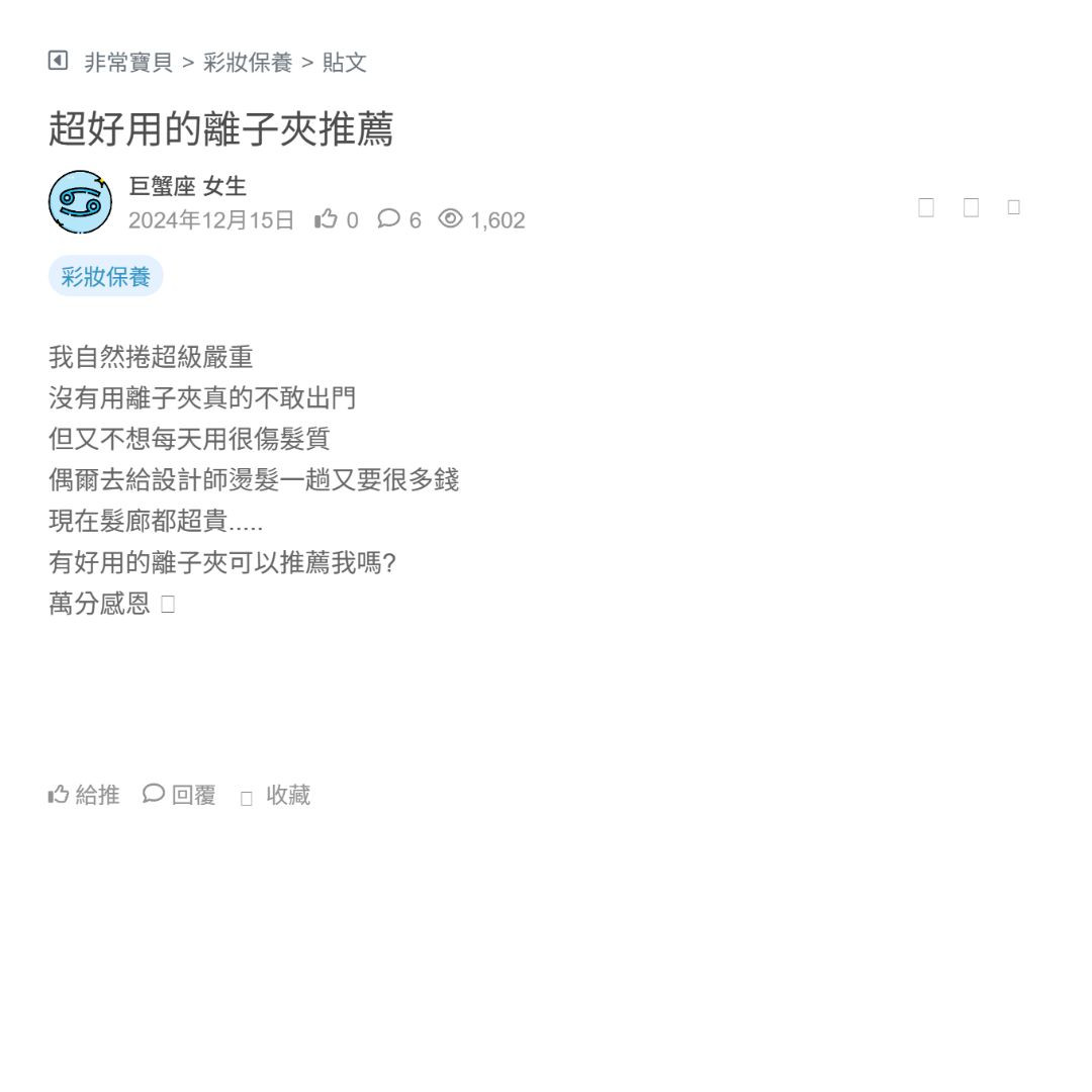 嗨大家 自從發現有頭皮保養的產品之後就深深入坑 雖然目前還沒有財力能進階到專櫃的部分 但目前手上也是用過了幾款可以分享 大多也都是各大美妝店就可以買到 本身我就是油性扁塌+細軟髮質 加上通勤戴都安全帽狂壓,真的超級不友善 平時我大概三個月到半年才會去做一次深層頭皮清潔 但孕後因為我出油跟毛囊阻塞變嚴... 看更多
